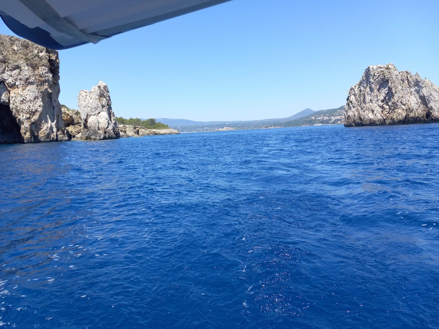 You know I just mentioned that every sound makes us worry now since we used the engine a lot recently to make the distance? To avoid future problems we did add an extra round anode on the shaft. That way if it fails, it won't get out of the boat this time. Well during the night I kept hearing a tuc tuc tuc tuc...... pause, tuc tuc tuc tuc...... pause, tuc tuc tuc tuc...... pause, so my brain thought that the anode that got loose and is now rubbing on the chair. So when we saw a bay, we stopped mid-water and while drifting I looked under the boat. We got lucky and it seems that it was nothing, so we kept going.