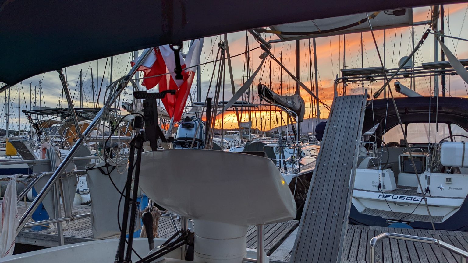 We left mid-day and we did a good distance, but the first night shift was super strange. It was the first time we sail at night. And as soon as Cesine went to bed the wind started to curl... and curl... die, and pick up again. This and every time you do something at night and cannot see anything since we had a black moon every sound is creepy and amplified 100-fold. But after taking it a few times, the wind had died so it was time to burn Dinosaur. We do go slow so we only burn around 2L/h for a small 4N/h. The shaft being slightly damaged does worry us so we try not to force anything. The worst thing at night is that the wind is gone, but the waves still exist and rock sideways sometimes.